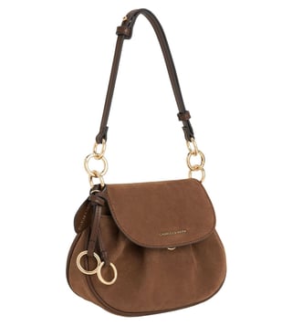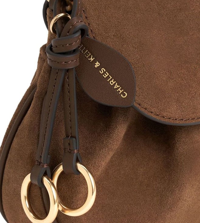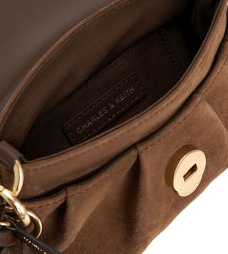 CHARLES & KEITH Mocha Brown Britton Textured Small Saddle Bag
