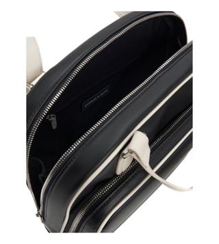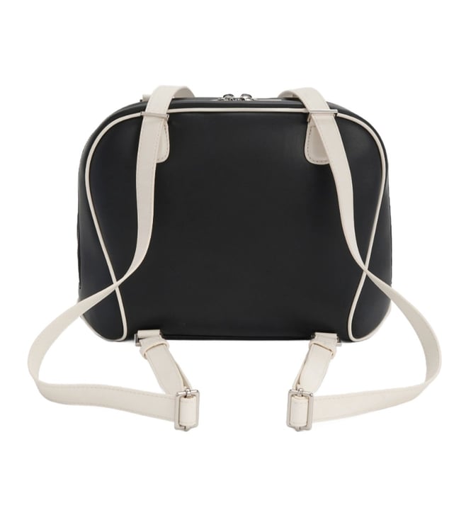 This Nelly backpack has a black body with white straps and trims. It also features a roomy front pocket and soft top handles. Carry it for hands-free convenience - it will also add a striking graphic element to all your outfits.