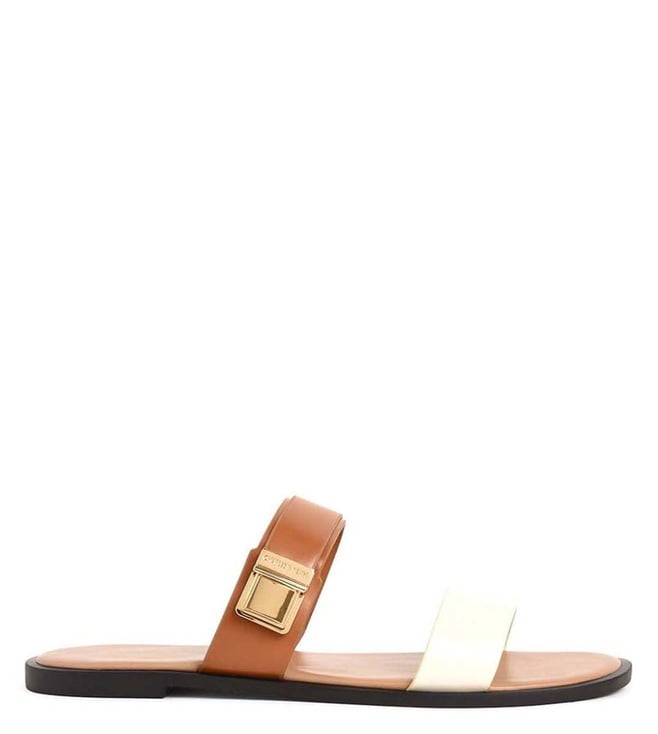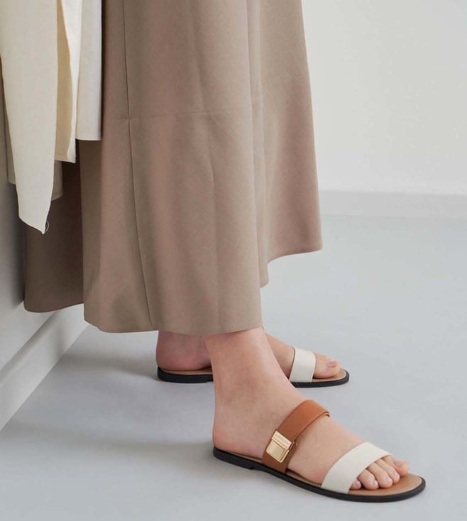Put a spring in your step every time you head out with these double strap slides that offer stylish comfort all day long. Featuring an eye-catching multi-coloured design, this pair will turn an ordinary outfit into a trendy and elegant look. Ace off-duty style by pairing them with an eyelet top and boyfriend jeans. The pair has an open toe and breathable lining.