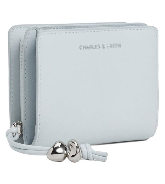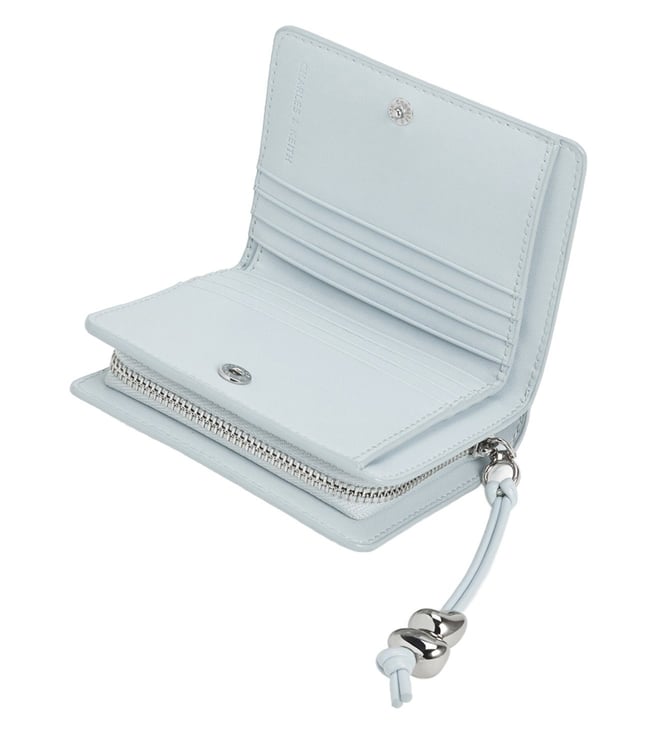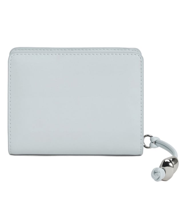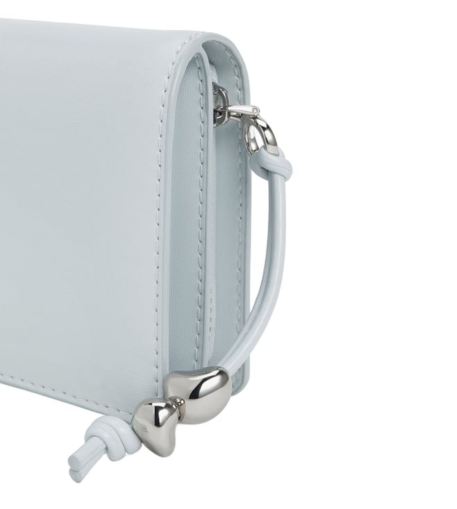 Embrace summer with the Augustine wallet in sea salt blue, featuring sculptural silver tone details that add a chic finish to the design. With its sleek and compact silhouette, it will slip effortlessly into any bag. Designed to suit modern lifestyles, this bag combines fashion with functionality, making it an ideal pick for those who value convenience without compromising on style.
