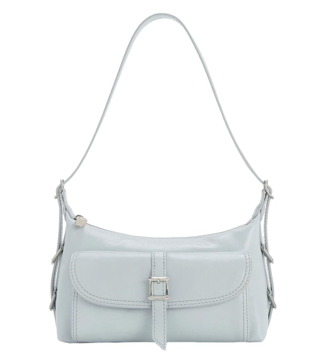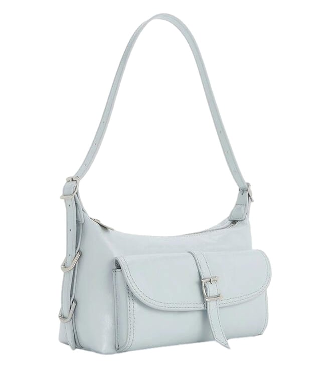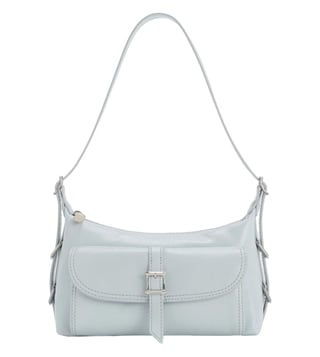 Look polished with the Bryna bag on your shoulder. The sleek elongated design features a belted compartment on the front, which is the perfect place for your frequently-used items. In sea-salt blue, it will add a bright pop of colour to any ensemble.