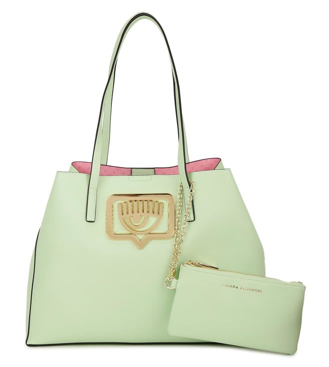Add subtle elegance to your outfit with this shopping bag from Chiara Ferragni and look timelessly classy. Assured to hold your belongings safe, this bag is all you need to be in fashion. Featuring a magnet closure and double handles, this bag highlights a flair of sophisticated charm. Its spacious compartments fit your essentials effortlessly.