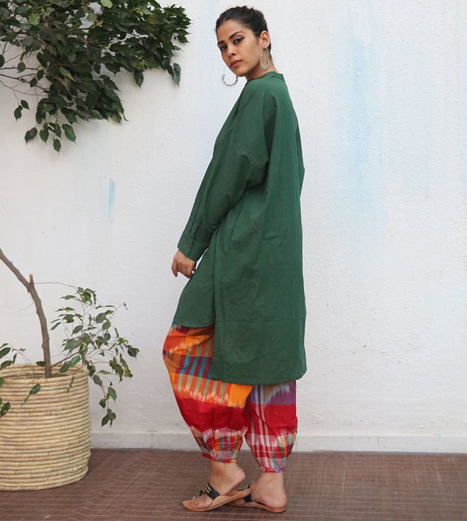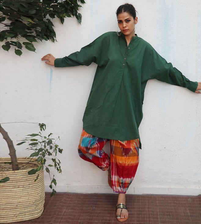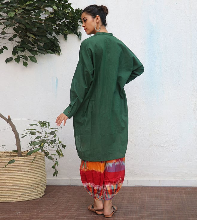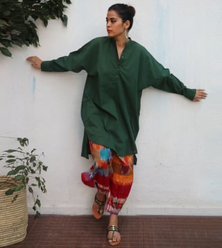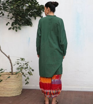 The Chidiyaa Pure Cotton Kurta for women is perfect for any occasion with its beautiful Aritri design. With stylish full sleeves and an elegant green color, this kurta is sure to make an impression. Look and feel confident in this high-quality kurta from Chidiyaa. Disclaimer: All other items in the image are only for display purposes and will not be a part of the delivery content. Product colour may slightly vary due to photographic lighting sources. Country of Origin - India.