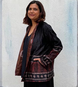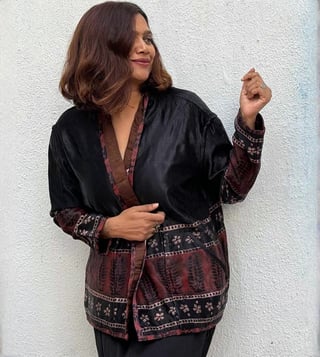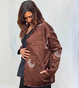 Give your weekend wardrobe a contemporary twist with this reversible jacket. Made from the opulent mashru silk, known for its silky sheen and rich texture, this jacket redefines versatile fashion. The reversible feature offers two equally enchanting looks in one, each side showcasing distinct colour palettes and intricate patterns inspired by traditional artistry. Disclaimer: All other items in the image are only for display purposes and will not be a part of the delivery content. Product colour may slightly vary due to photographic lighting sources. Country of Origin - India.