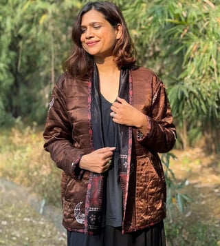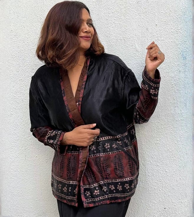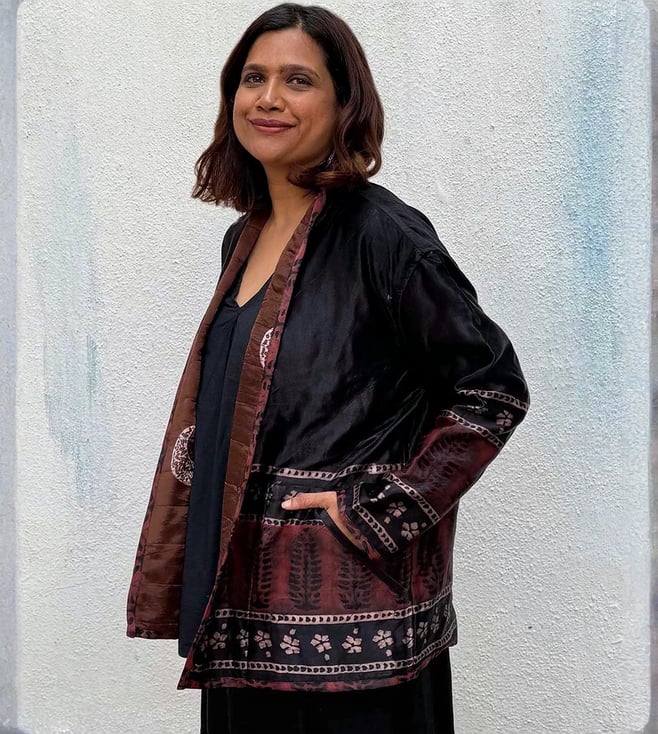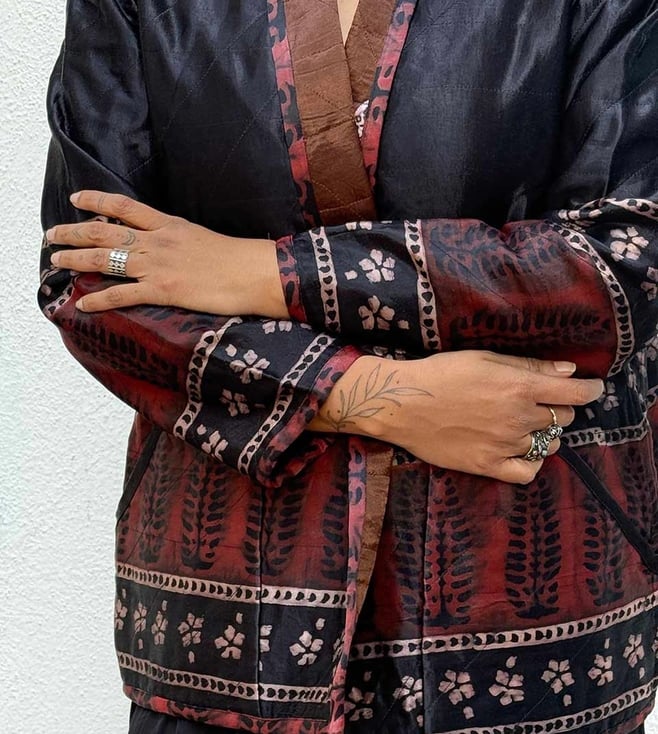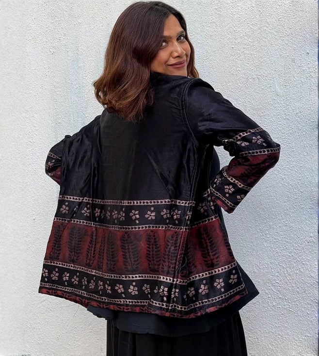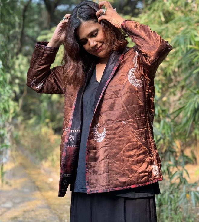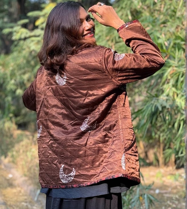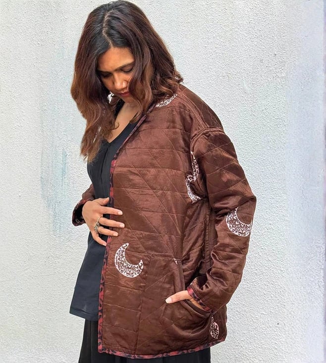 Chidiyaa Black & Brown Sardi Ki Dhoop Willow Wrap Mashru Silk Reversible Jacket