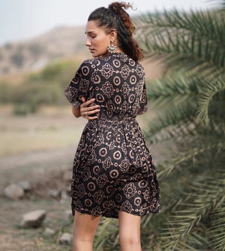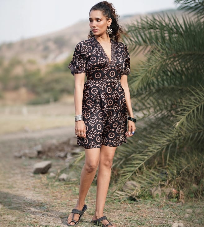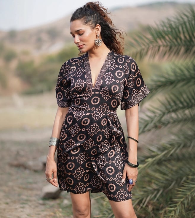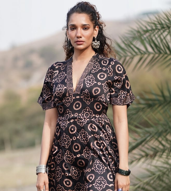 Chidiyaa Black Gypsy Heart Marjorie Modal Silk Dress