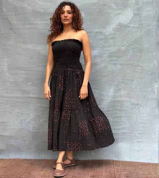 Pep up your wardrobe with this dress. Inspired by the rich, earthy tones of a breathtaking sunrise, this dress features intricate block prints that evoke the natural beauty of the world. Crafted from pure cotton, it offers a comfortable and stylish fit that perfect for both casual and semi-formal occasions. Disclaimer: Product colour may slightly vary due to photographic lighting sources. Country of Origin - India.
