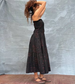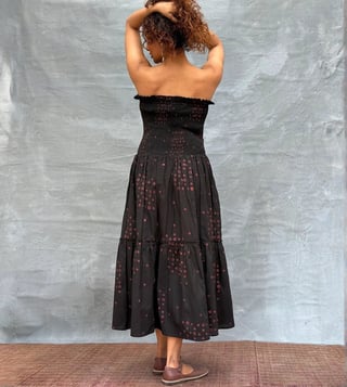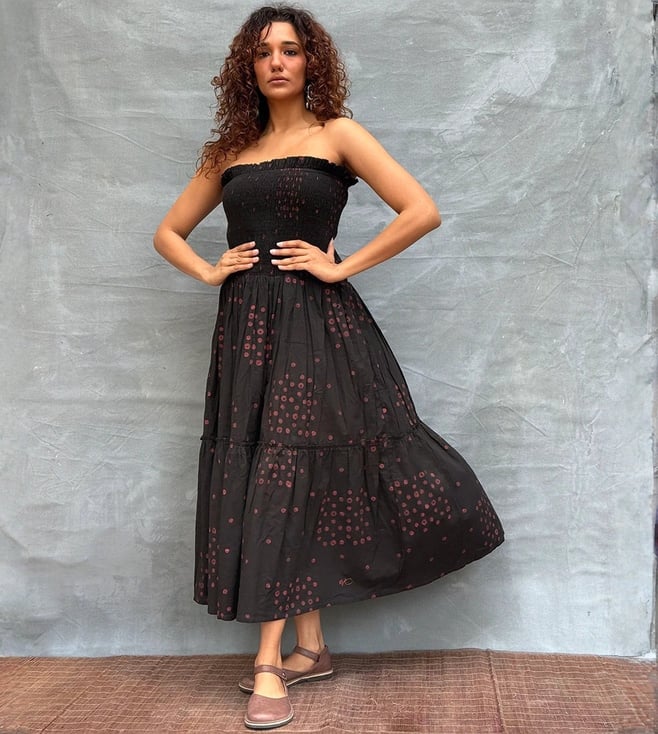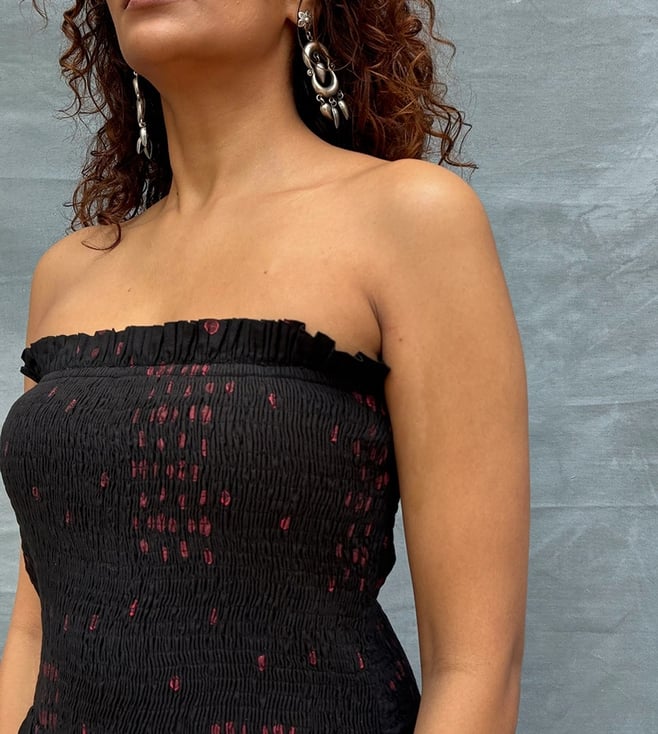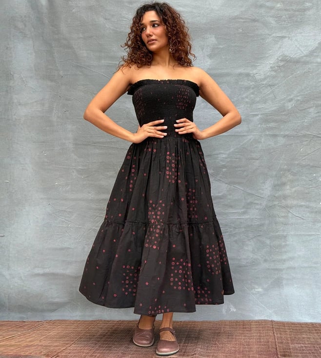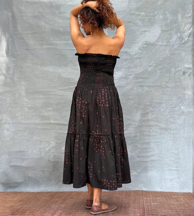 Chidiyaa Black Soil Crimson Earthrise Blockprinted Cotton Dress