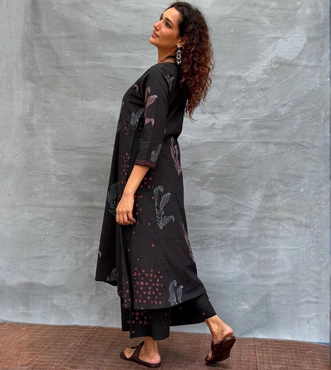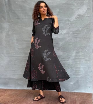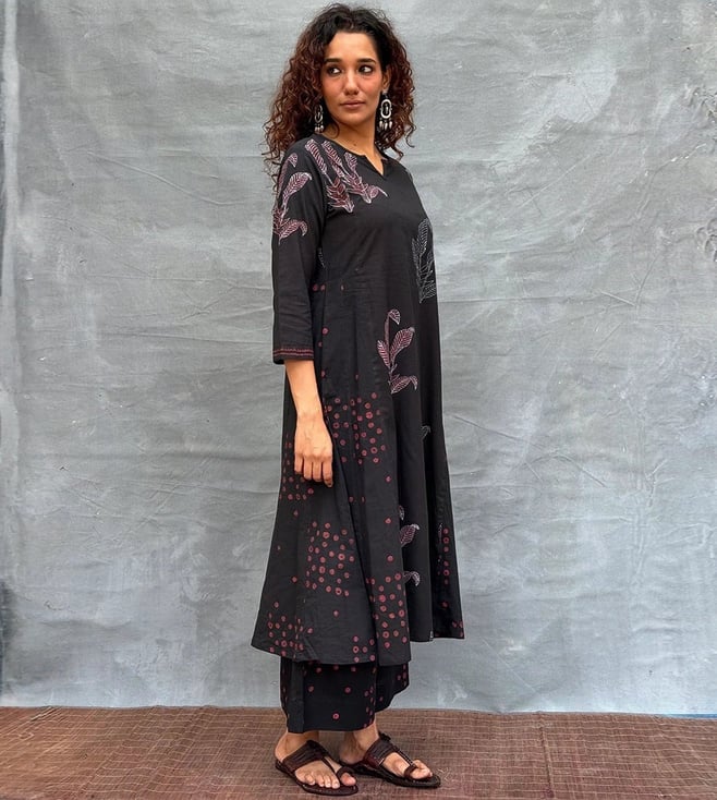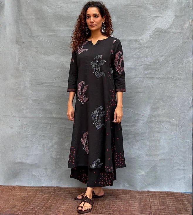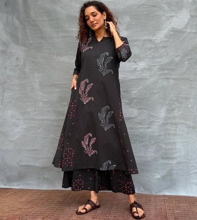 Chidiyaa Black Soil Dewlit Glow Blockprinted Cotton Kurti