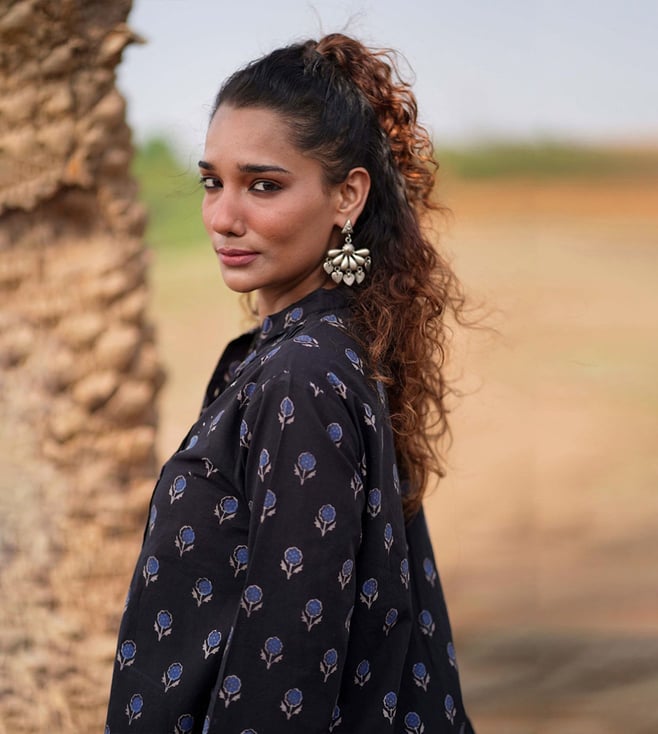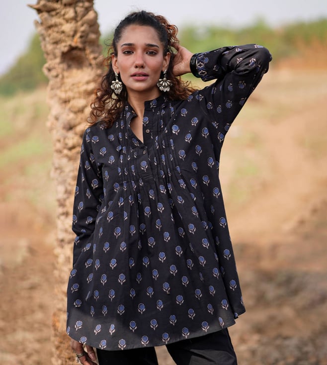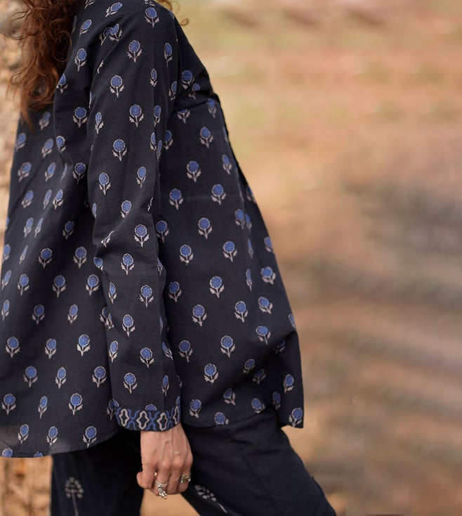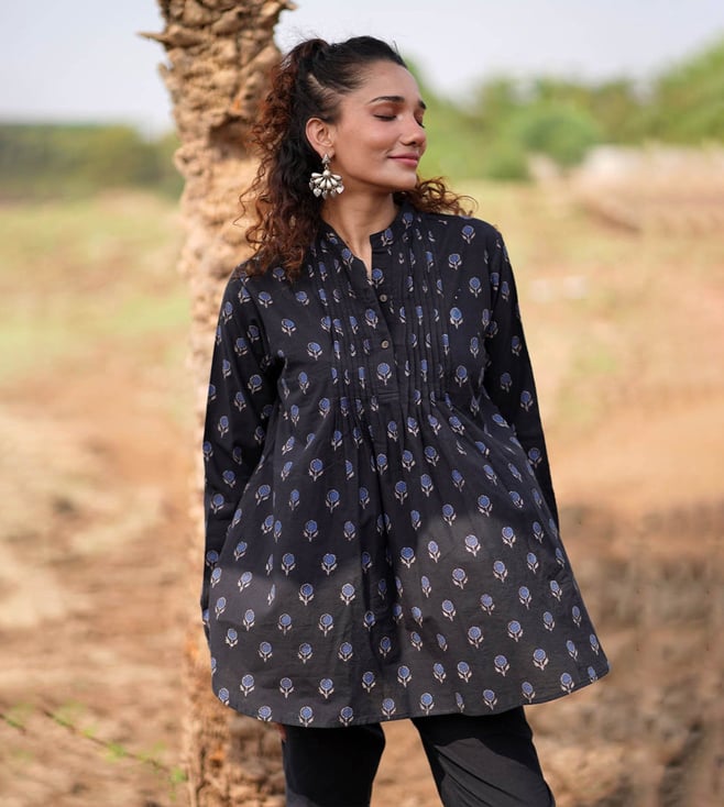 Step into the world of heritage-inspired fashion with this Falling Starlight Blockprinted Cotton top. Designed to exude understated elegance, this womens top is crafted from 100 percent cotton, ensuring breathability and comfort throughout the day. The exquisite patterns in the delicate hand-block prints, created by talented artisans, combine heritage and contemporary design.