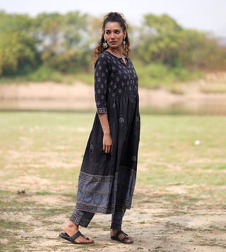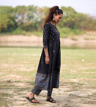 A tribute to timeless artistry, the Midnight Garden Blockprinted Cotton Kurta Set is designed for women who seek the perfect blend of tradition and contemporary elegance. Featuring delicate hand-stamped block prints, this kurta set tells a story of skilled artisans reviving an age-old craft. The lightweight, breathable cotton fabric drapes gracefully, ensuring all-day comfort with a refined silhouette.