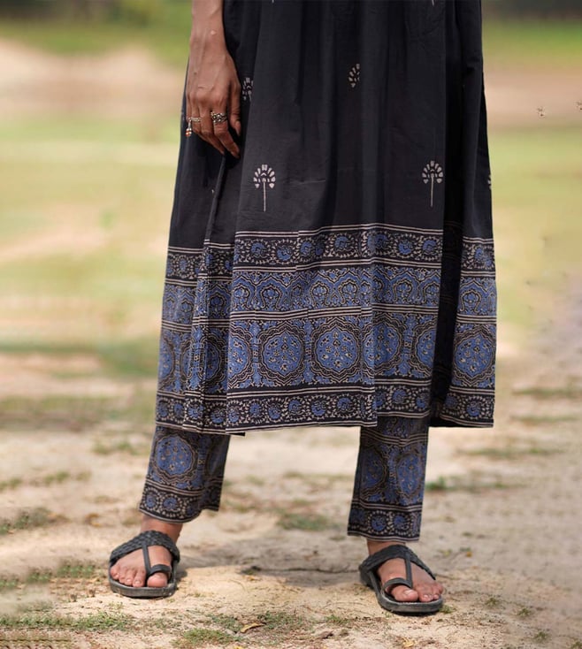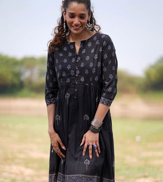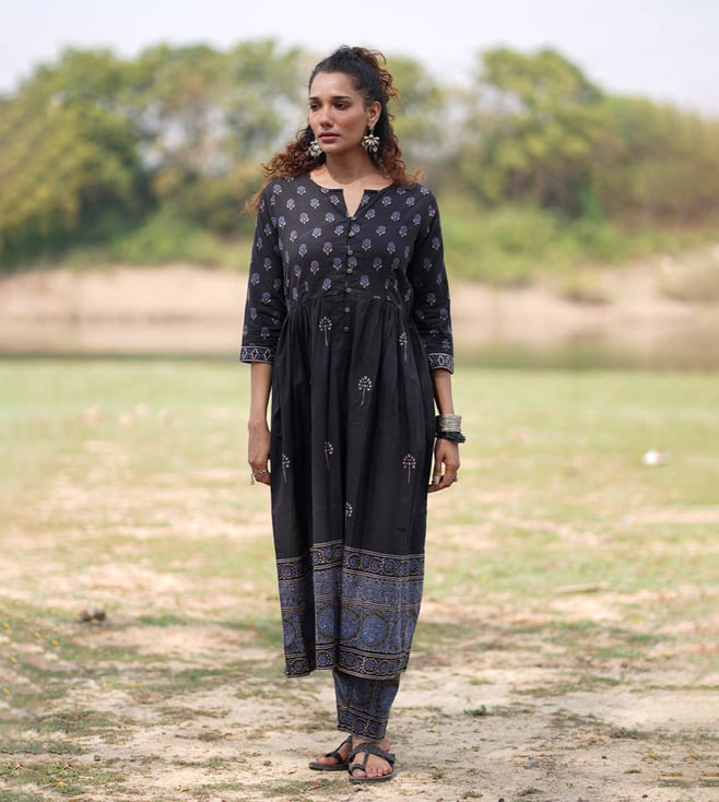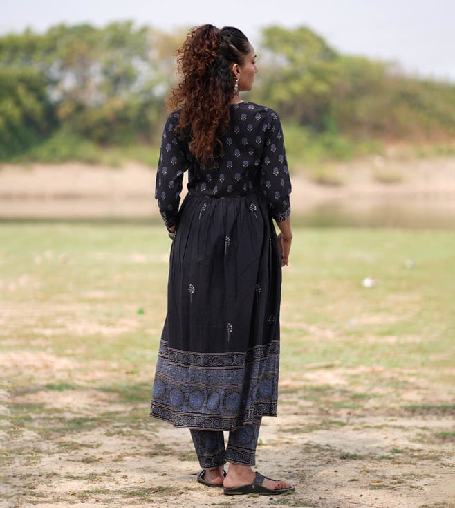 Chidiyaa Black WWB Midnight Garden Block Printed Regular Fit Kurta Set