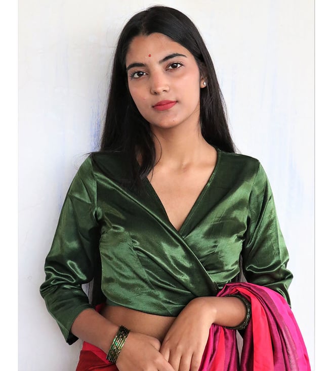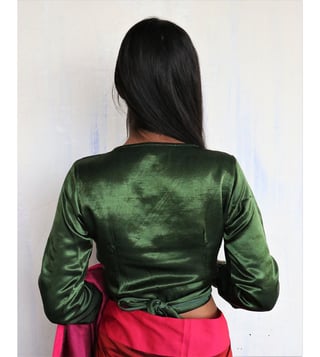 Chidiyaa Green Tie-Up Mashru Silk Sahar Blouse