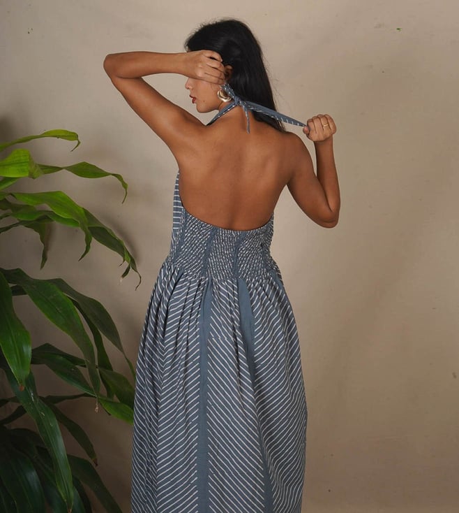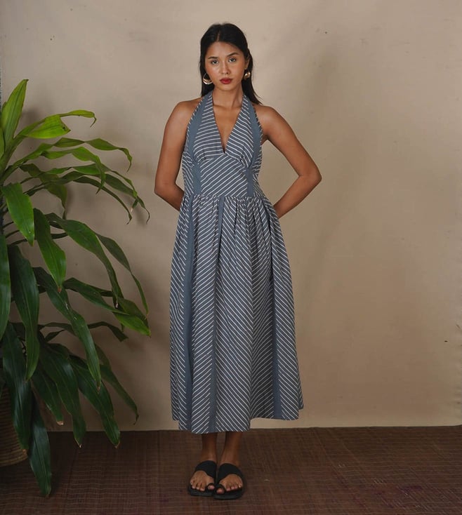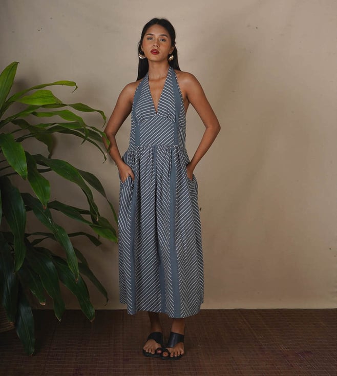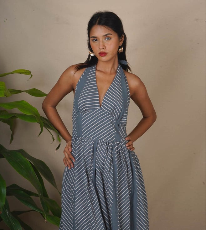 Step into timeless beauty with the Lunar Hush Grey Block Printed Dress, an elegant piece inspired by the serene glow of a moonlit night. This dress for women is designed to combine heritage craftsmanship with contemporary silhouettes, making it an ideal choice for celebrations, formal gatherings, or an evening with friends. The soft grey shade adorned with intricate block-printed patterns creates a mesmerizing effect, making this dress a favorite for women who value grace and comfort.