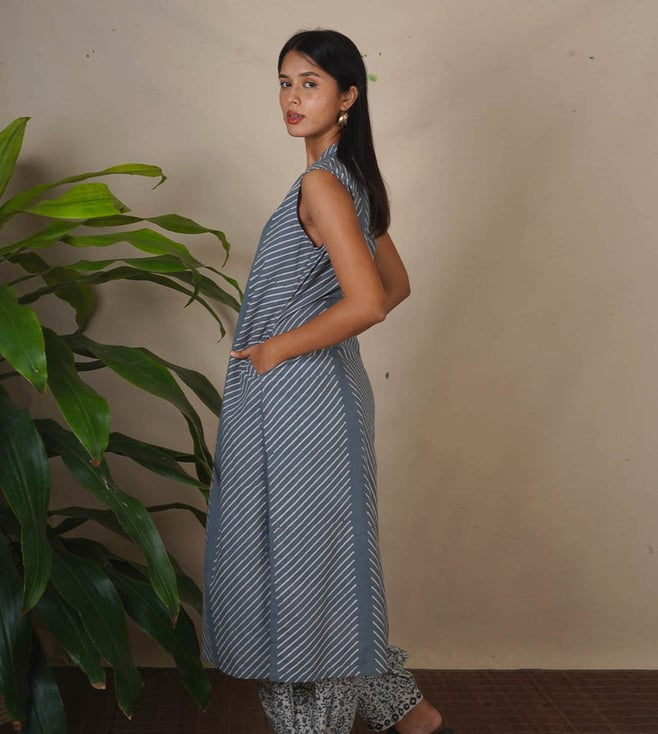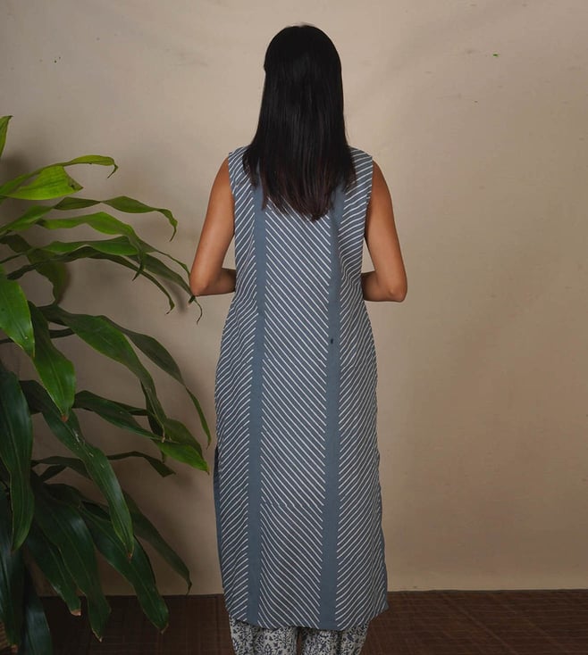 Step into serene sophistication with the Cloud Kiss Grey Block Printed Kurti, an ensemble that captures timeless craftsmanship and modern design. This beautiful kurti for women showcases intricate block prints in soft grey, creating a captivating balance between heritage and contemporary style. Tailored for comfort and designed with elegance in mind, it? ideal for celebrations, office wear, or casual gatherings.