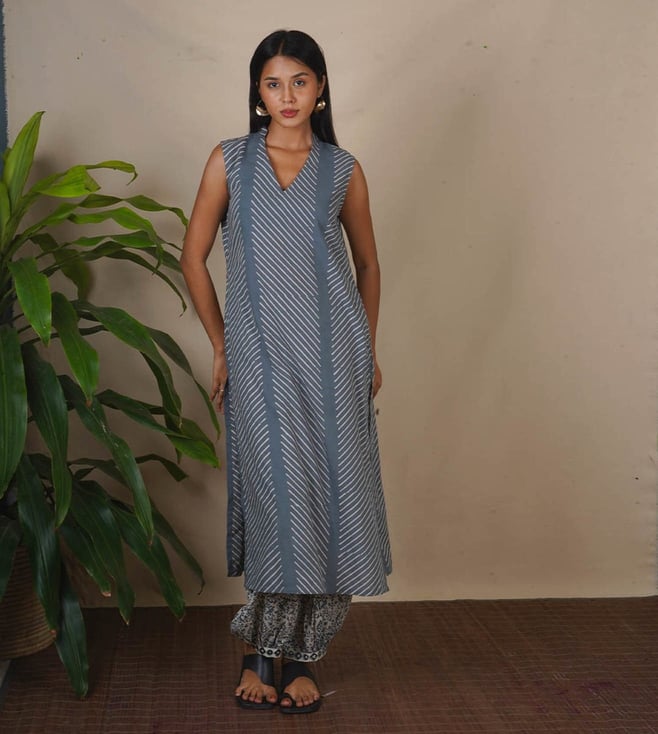Chidiyaa Grey Pure Cotton Straight Fit Printed Kurta