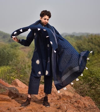 Chidiyaa Indigo Flow Blockprinted Dupatta Awargi