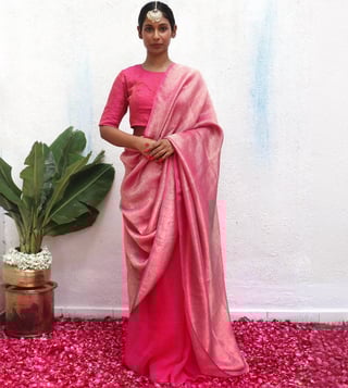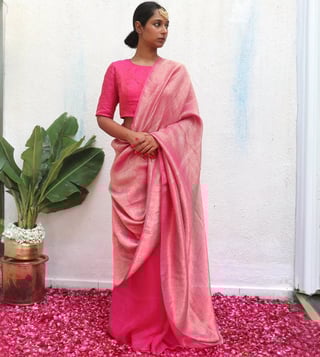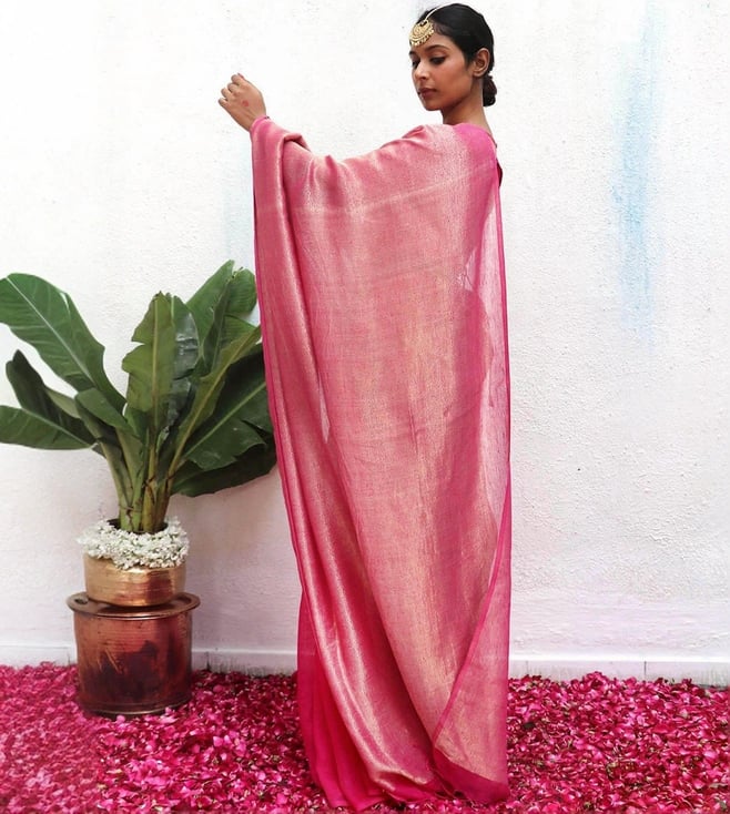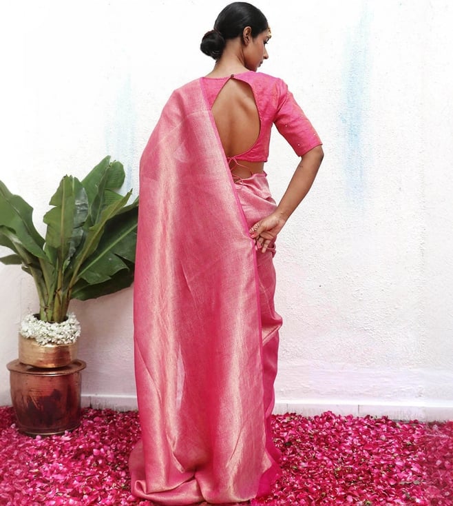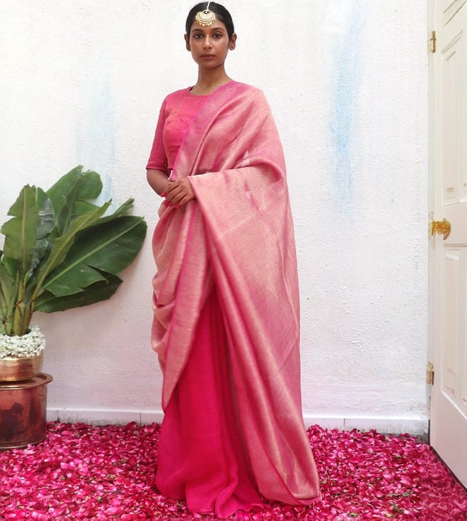 Chidiyaa Pink Eknoor Ojaswee Handwoven Linen Zari Saree