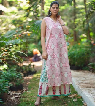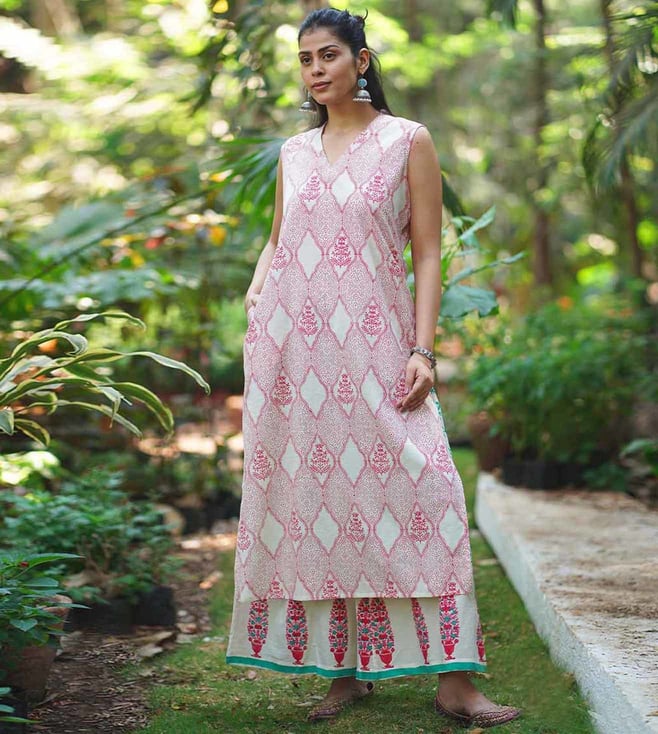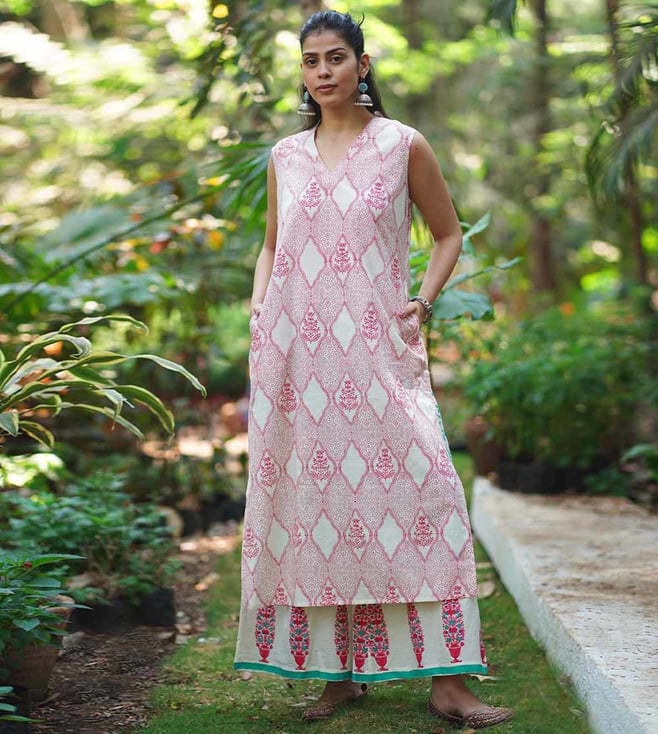 Chidiyaa Pink Pure Cotton Regular Fit Block Print Kurta