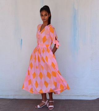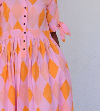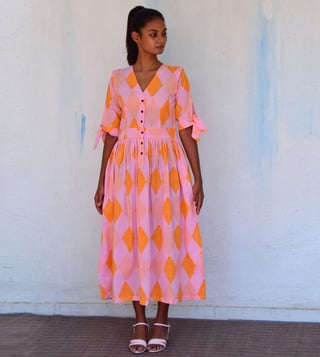 Step into ethereal beauty with this dress. It features captivating diamond prints. Crafted from soft cotton, it offers comfort and transforms you into a modern-day princess, embracing nature's poetry. Disclaimer: Product colour may slightly vary due to photographic lighting sources. Country of Origin - India.