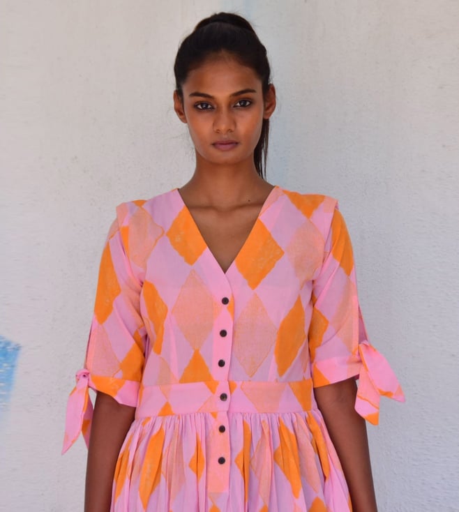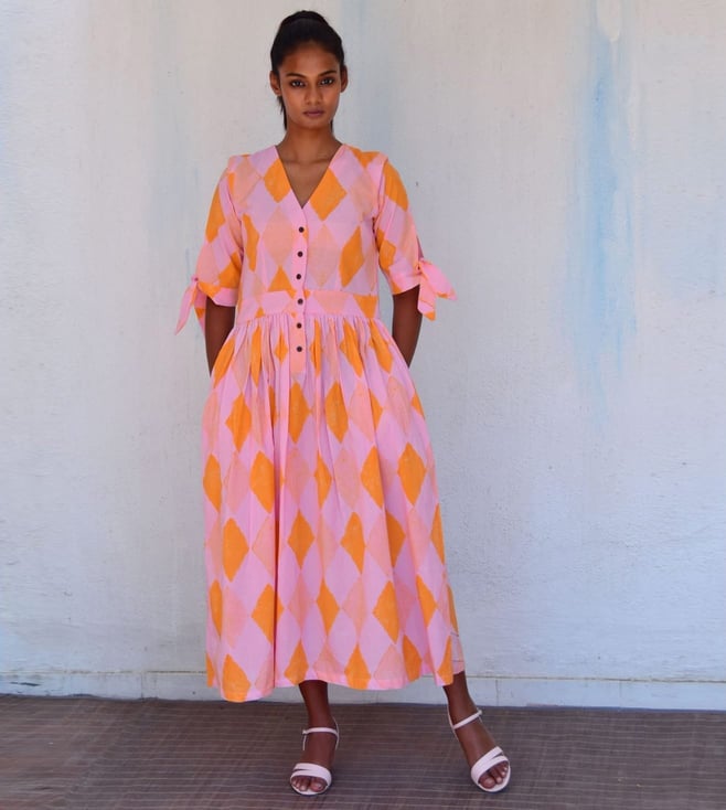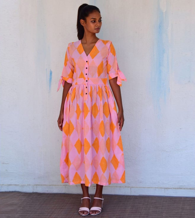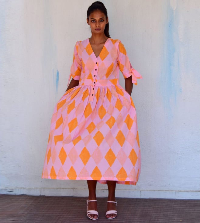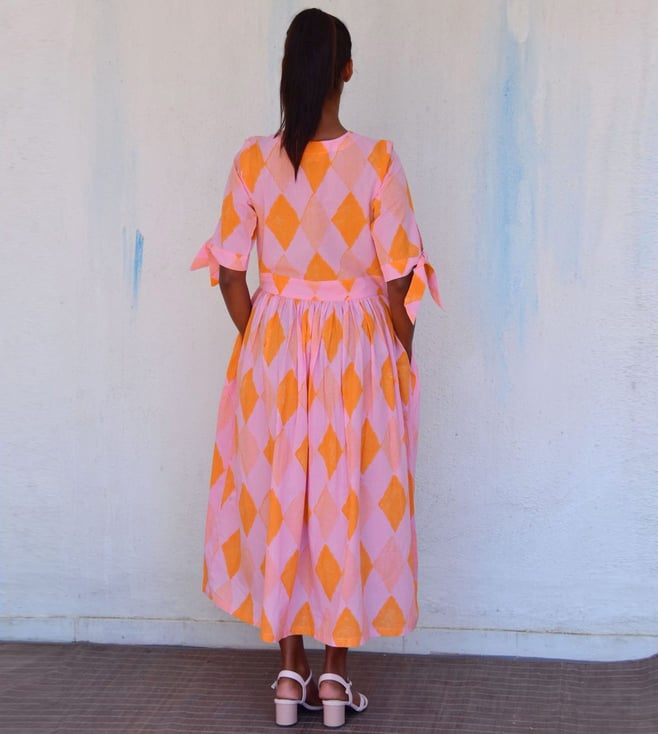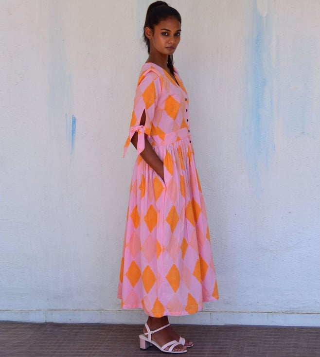 Chidiyaa Pink Smell Of Rain Miranda Hand Block Printed Cotton Dress