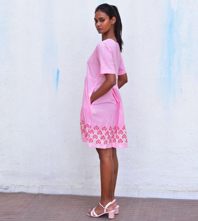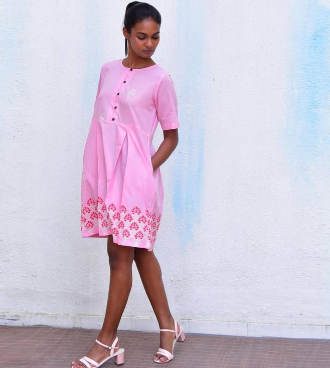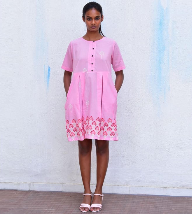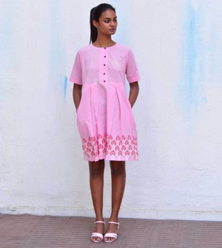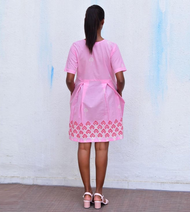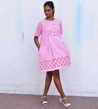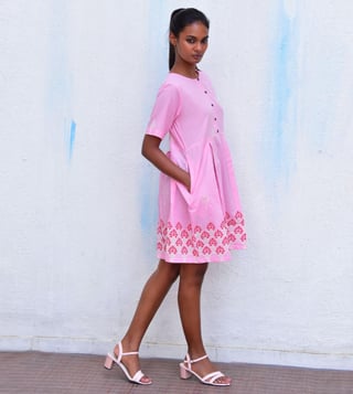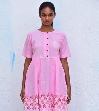Chidiyaa Pink Smell Of Rain Sadru Bagh Hand Block Printed Cotton Dress