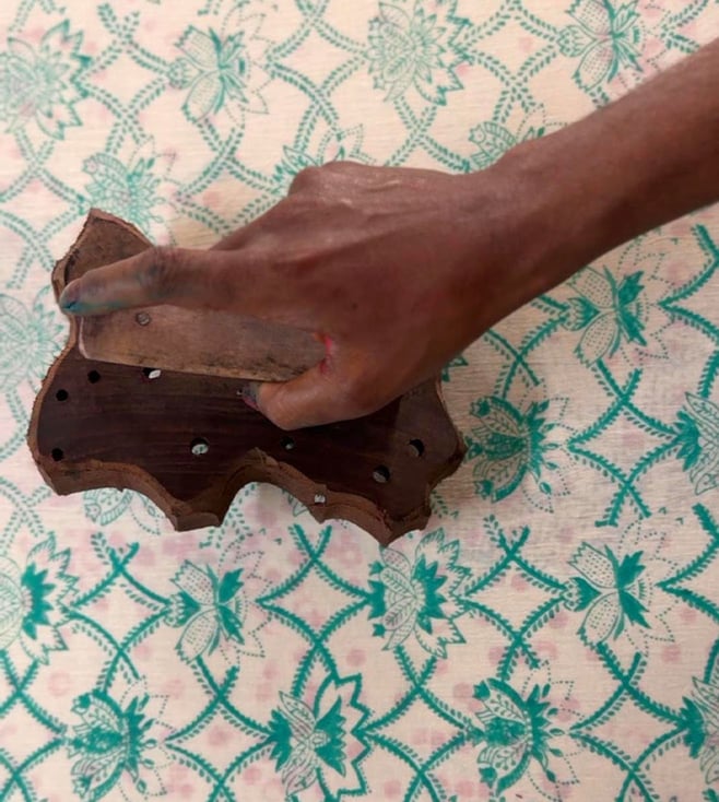 Chidiyaa Teal Pure Cotton Regular Fit Block Printed Dress