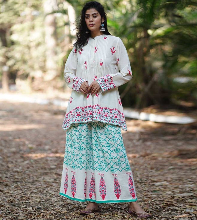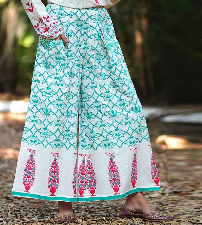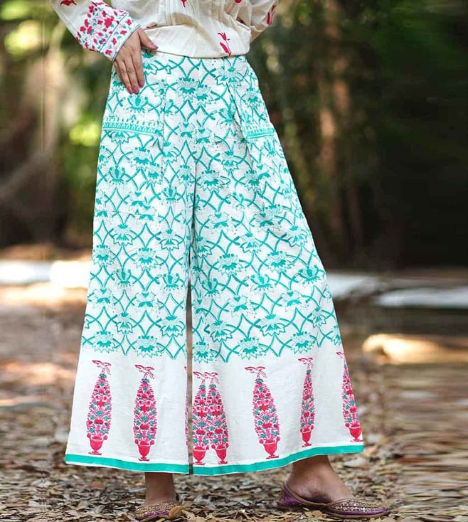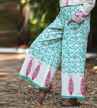 Chidiyaa Teal Pure Cotton Regular Fit Block Printed Ethnic Bottom