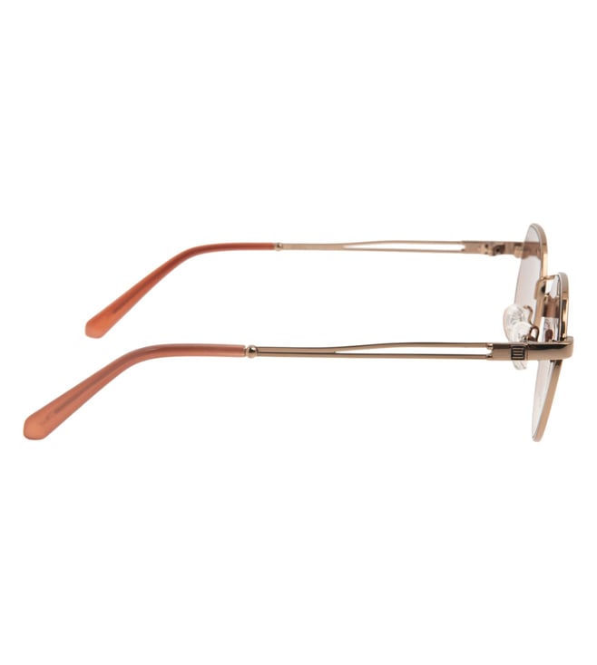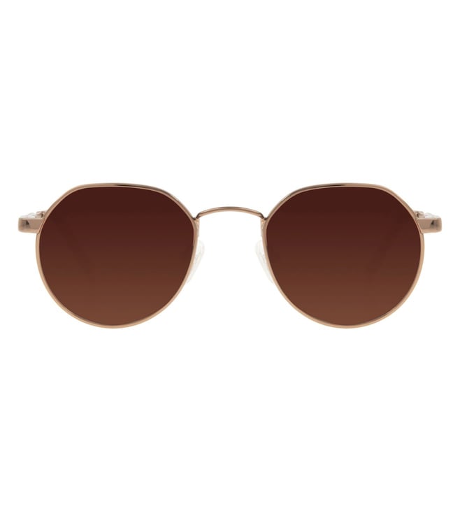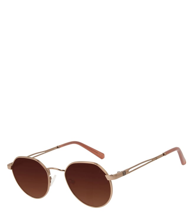 A breathing illustration of fine craftsmanship, this pair of oval sunglasses from Chilli Beans is sure to make a style statement. Fashioned from stainless steel, the lightweight frame vaunts a golden hue. The brown lenses are crafted with care from polycarbonate that not only lends you a smart look but also assures complete protection of your eyes. The full-rim design further magnifies its overall charm.