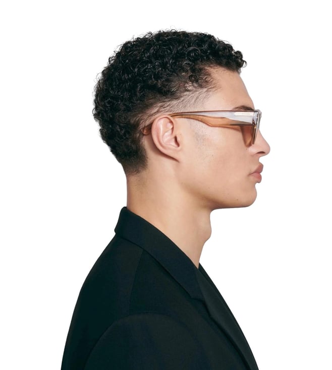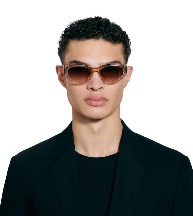 Upgrade your style with these contemporary sunglasses featuring stylish wings. Handcrafted from top-notch material, bevel cuts add depth to the sleek silhouette, while linear temples enhance the design. Fitted with UV-protective lenses, they come with a branded case, pouch, and cleaning cloth.
