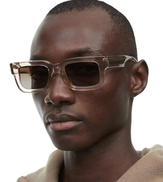 Upgrade your style with these architecturally inspired sunglasses, designed with a sleek silhouette and precise angles. The minimalist frame is handcrafted in superior material with linear temples for a refined edge. The UV-protective lenses ensure clarity, while a branded case, pouch, and cleaning cloth keep them pristine.