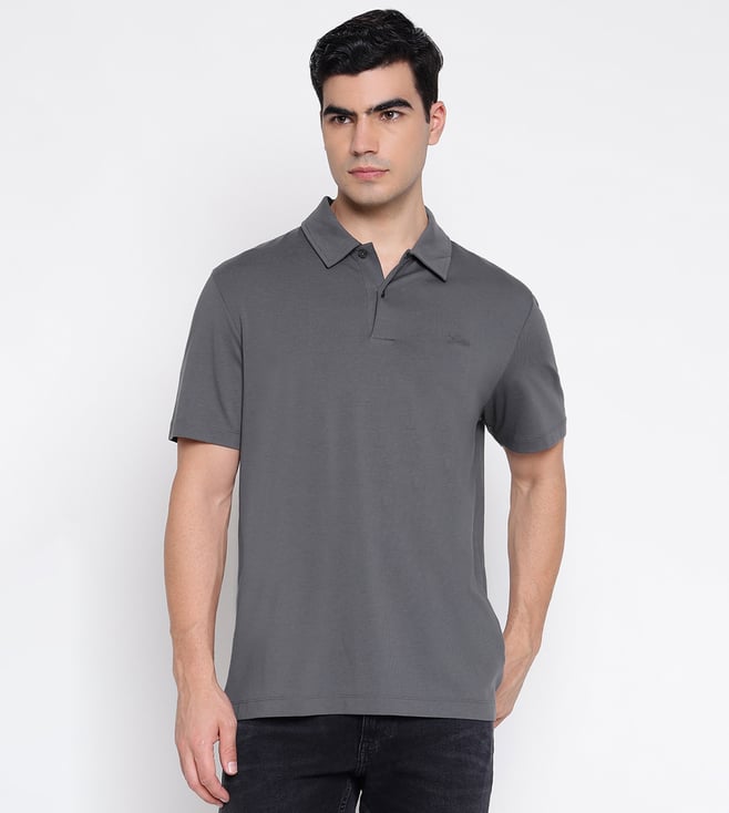 Baisc Pima Stretch Artillery Grey Solid Polo Collar Slim Fit T-Shirt