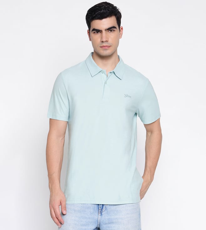 Small Script Seafoam Mist Solid Polo Collar Regular Fit T-Shirt