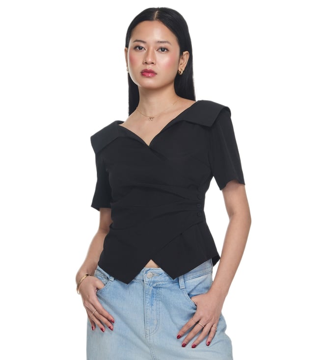 Men's Black Cotton Solid Regular Fit Spread Collar Short Sleeve Polo T-Shirt