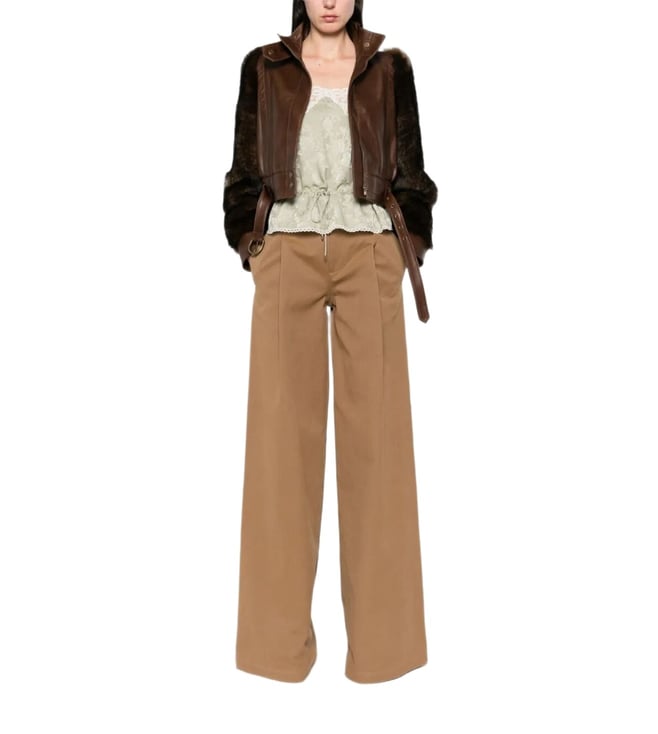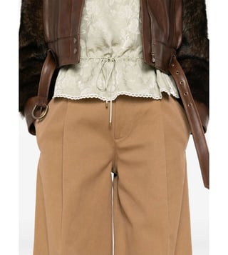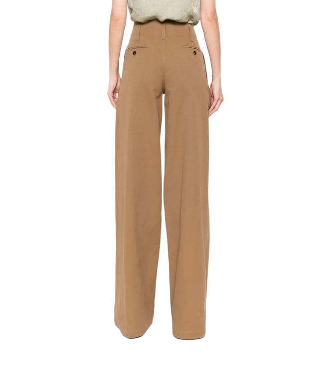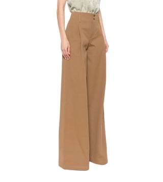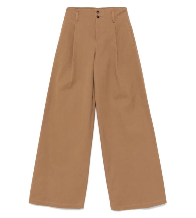 Elevate your wardrobe with the Chloe Beige Loose Fit Trousers. Designed with high-rise wide-leg pants in garment-dyed cotton canvas, featuring front pleats and engraved horn buttons. these trousers combine comfort and sophistication for everyday wear. Products purchased from Darveys are supported exclusively by the warranty/exchange policies of Darveys and its partner boutiques. Brand owners and their channel partners are not responsible for exchange/warranty services for items purchased through Darveys.