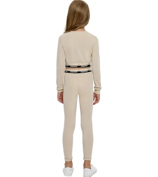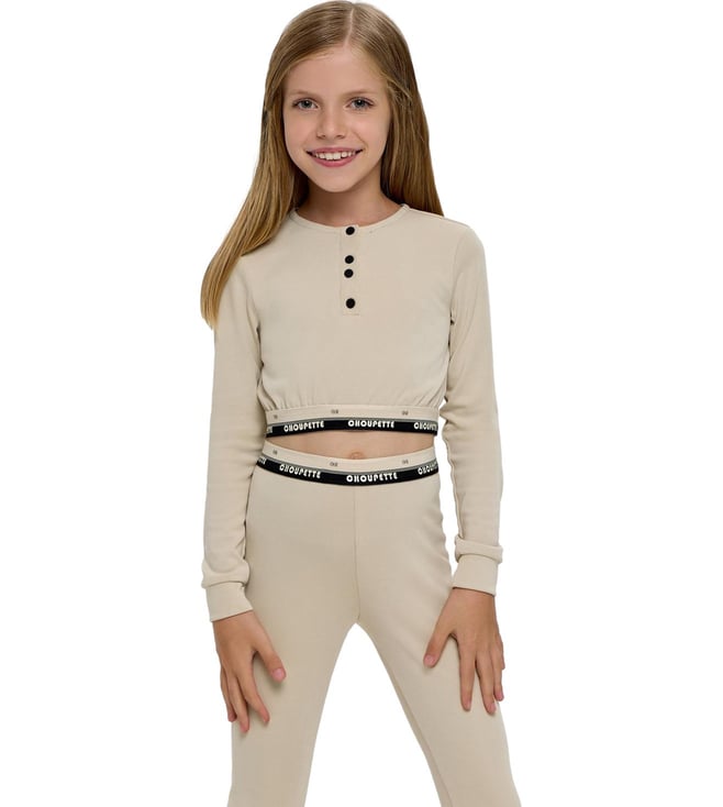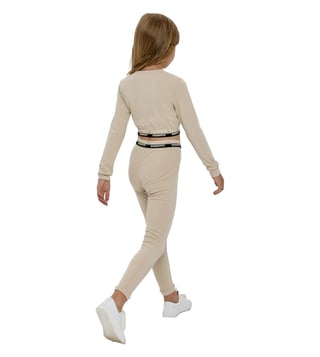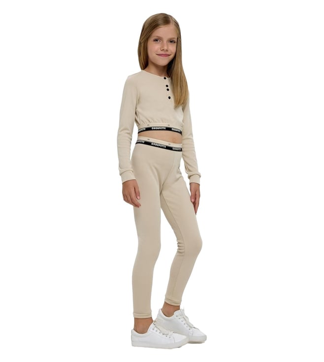 This Cropped Long-Sleeve Tee and Legging Set, made from soft cotton, offers a stylish and comfortable outfit for girls. The breathable fabric ensures ease of movement, while the tailored design presents a sleek and modern silhouette. Perfect for layering or standalone wear, this set combines practicality with understated sophistication.