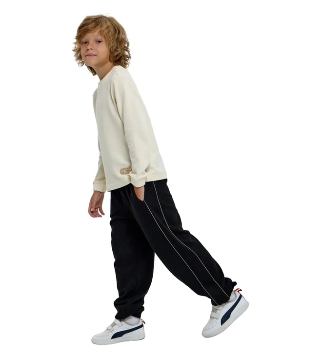 These comfortable joggers for boys combine effortless style with practical design. Crafted from soft, breathable fabric, they feature subtle stylish details that elevate everyday wear while ensuring ease of movement. Ideal for active days with a refined touch.