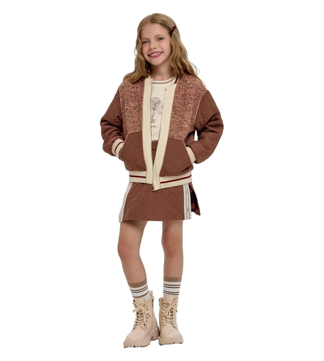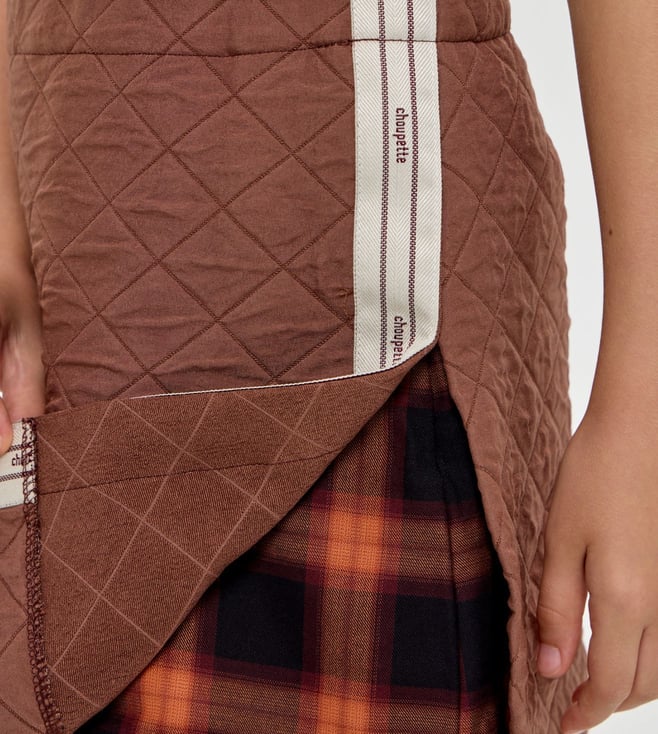 This quilted chocolate skirt for girls features a refined check lining, combining classic style with cozy warmth. Its tailored design ensures comfort while adding a touch of elegance to any outfit, perfect for sophisticated occasions or everyday wear.