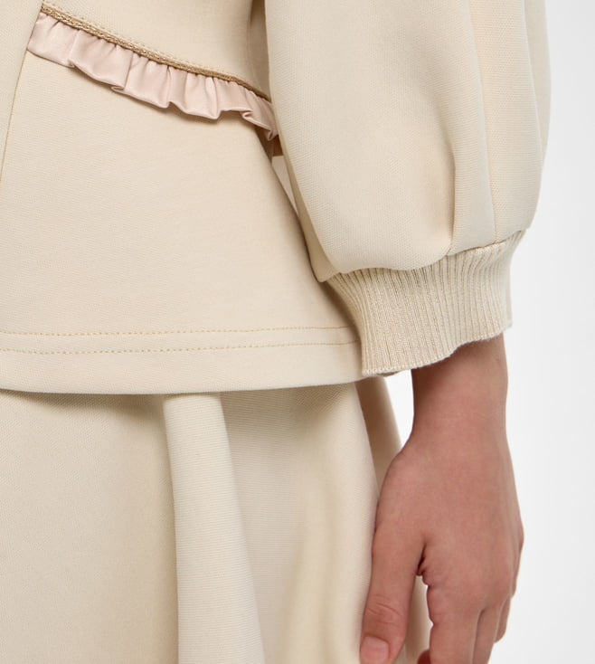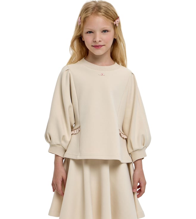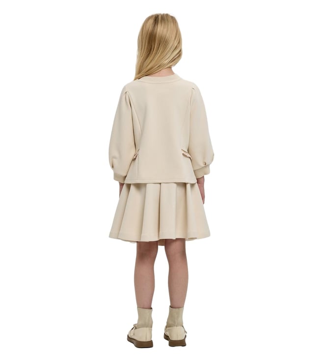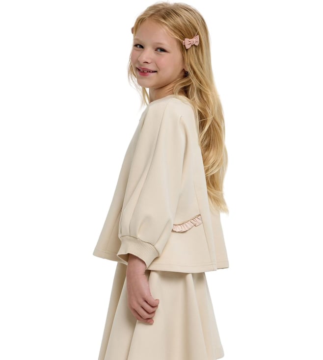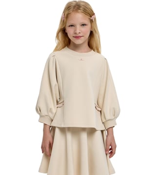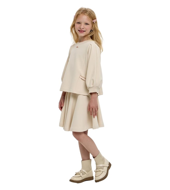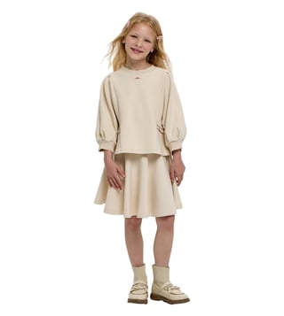 This elegant sweatshirt and skirt set for girls combines refined style with comfortable wear. The sophisticated design ensures a polished look, perfect for occasions where a graceful and coordinated outfit is desired. Crafted to offer both ease and charm, this set is a timeless addition to a young wardrobe.