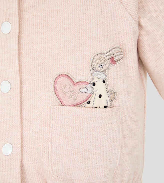 This elegant jersey tracksuit set for baby girls includes a stylish bomber jacket and matching pants, featuring a charming bunny detail. Crafted from soft, breathable fabric, it ensures comfort and flexibility for little ones while offering a refined look. Perfect for everyday wear or special outings, this set combines practicality with gentle sophistication.