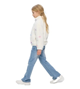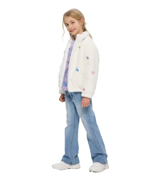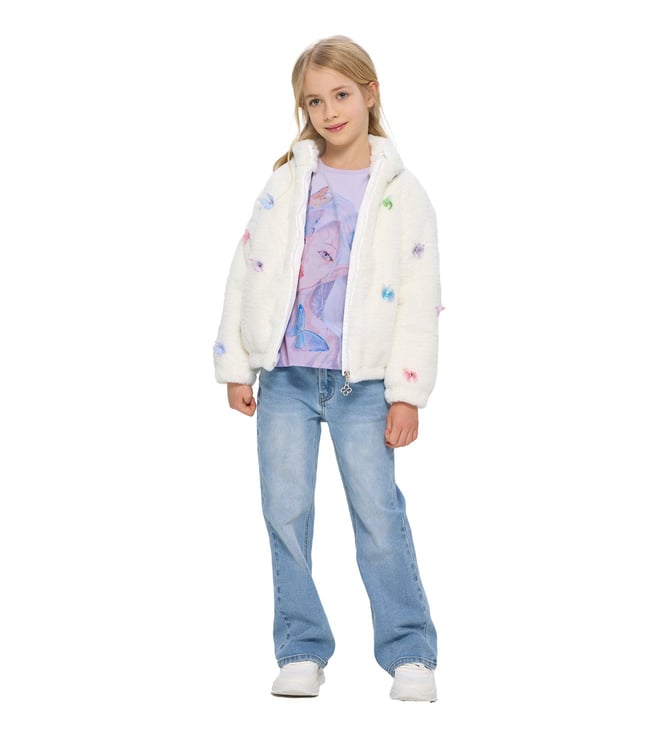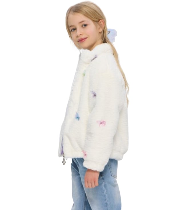 The Choupette Ecru Outerwear Soft Fur Regular Fit Bomber Jacket with Butterflies is a perfect blend of elegance and comfort for girls. Crafted from premium soft fur fabric, this jacket offers a cozy and warm feel, ideal for cooler days. The charming multicolored butterfly pattern enhances its graceful look, adding a touch of playful sophistication. Designed in a regular fit, it ensures ease of movement and a flattering silhouette. Whether paired with jeans or a dress, this bomber jacket effortlessly elevates any outfit, making it a stylish choice for both casual outings and special occasions.