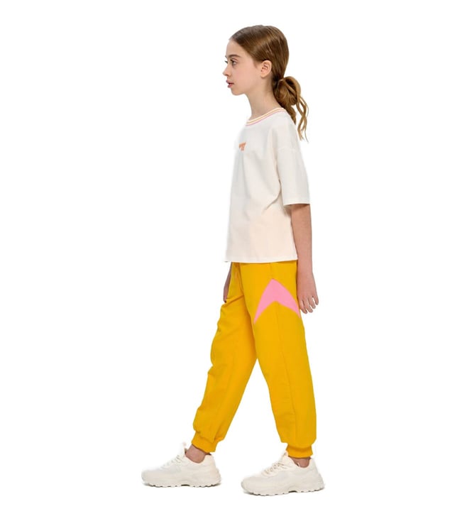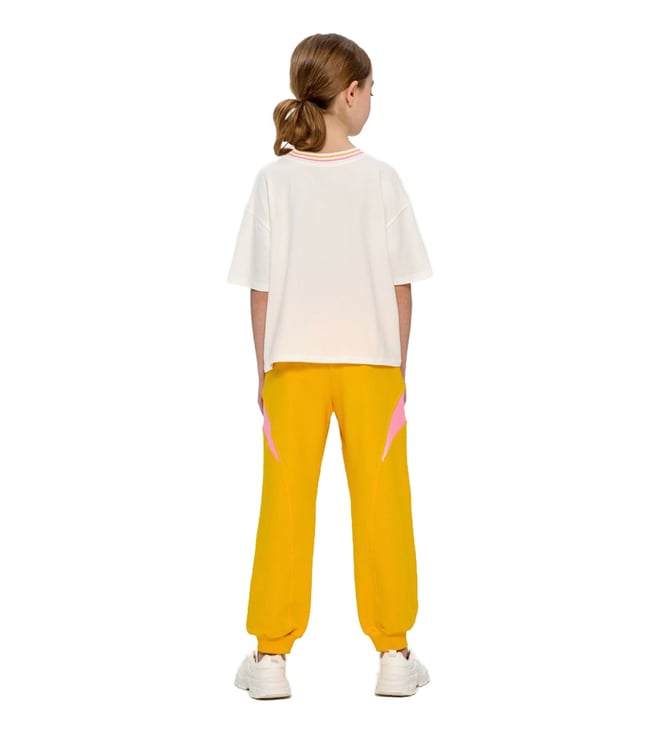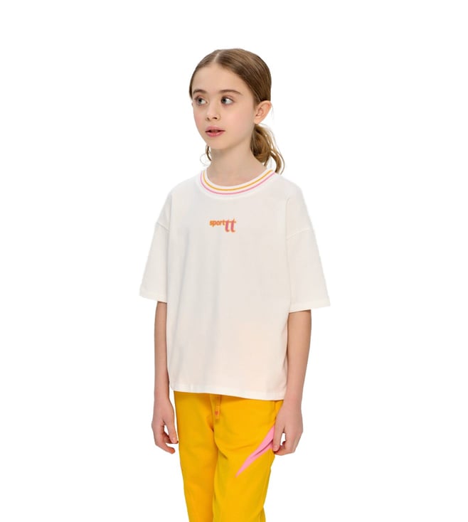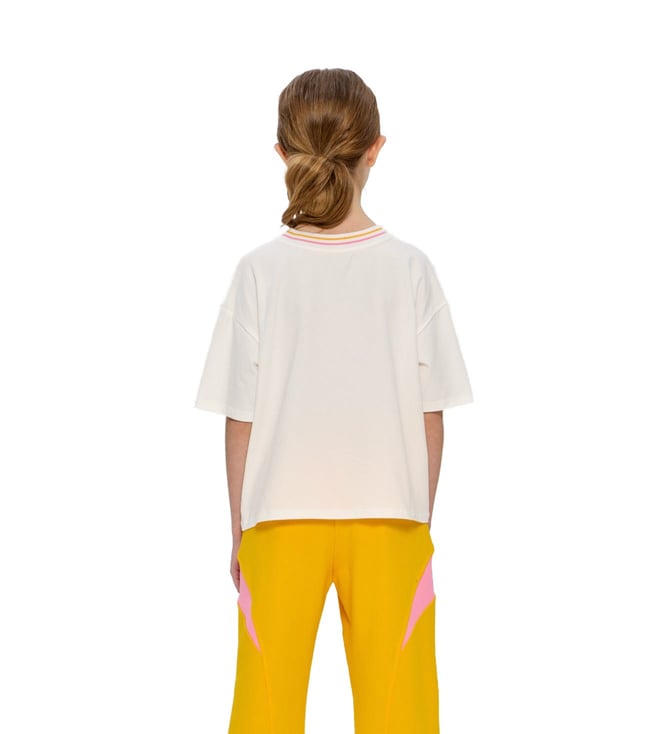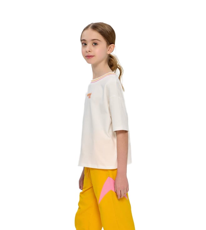 Elevate your little girls active wardrobe with our Choupette Girls White Relaxed Fit Sports Set With Embroidery. This trendy ensemble features delicate embroidery and stylish down shoulder sleeves, providing both comfort and flair for all her fun-filled days. Perfect for activities that require movement, this set combines fashion and function seamlessly. Treat your stylish young athlete to this must-have outfit that will keep her looking and feeling her best while she plays.