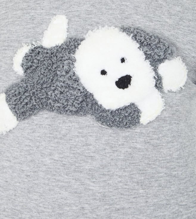 Choupette Grey Fashion Rebellion 3D Charming Doggy Applique Regular Fit Romper