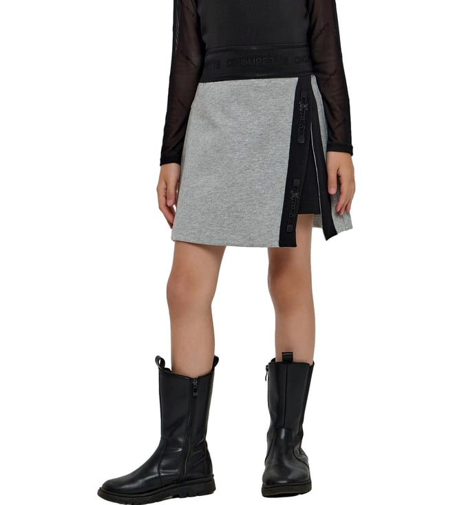 Choupette Grey Fashion Rebellion Embroidered Regular Fit Elegant Shorts Skirt