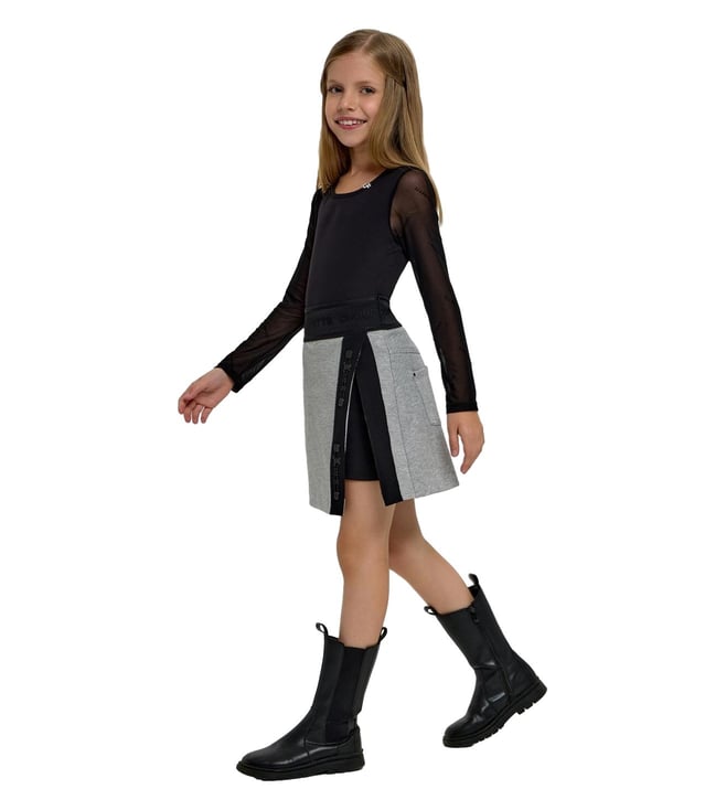 This grey melange elegant shorts-skirt for girls offers a sophisticated blend of style and comfort. Made from soft, high-quality fabric, it provides ease of movement while maintaining a graceful silhouette, perfect for both everyday wear and special occasions.