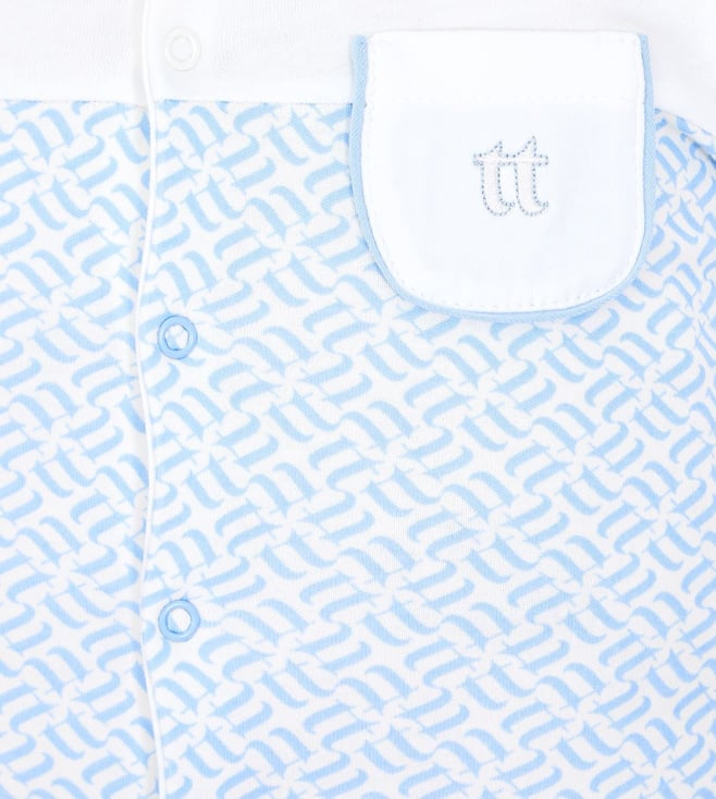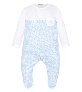 This branded print coverall, made from natural cotton, offers a soft and breathable layer for baby boys. Designed for comfort and ease, it ensures gentle care for sensitive skin while providing a polished, stylish appearance. Perfect for everyday wear or special occasions, this coverall combines quality with refined simplicity.