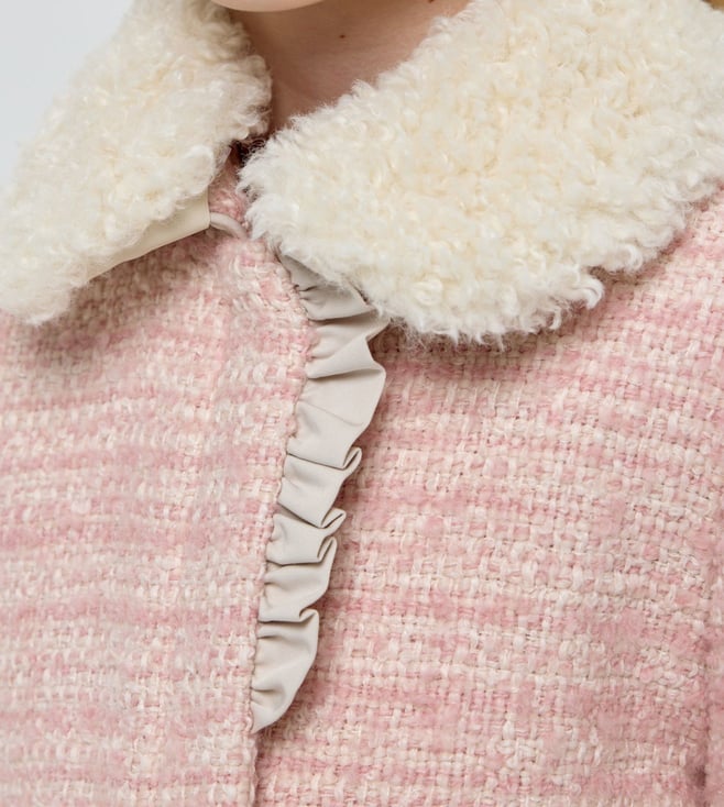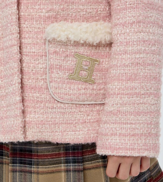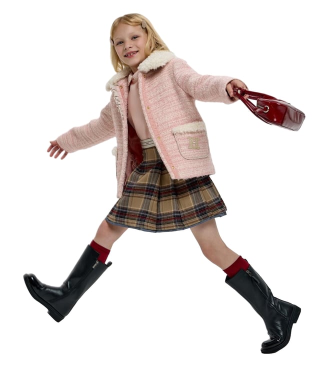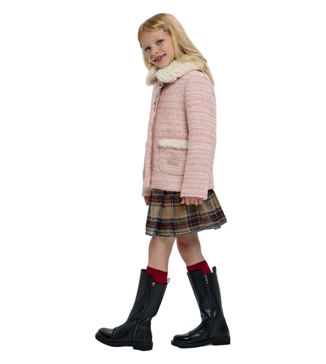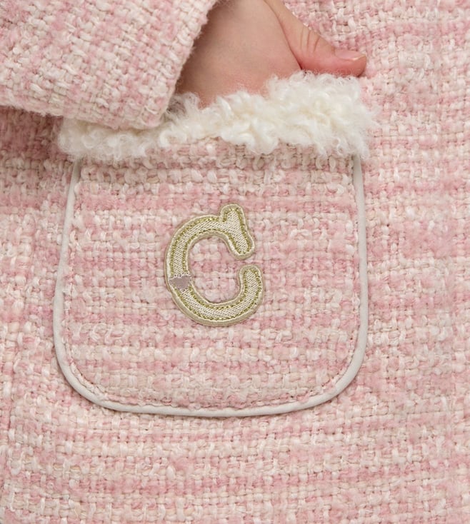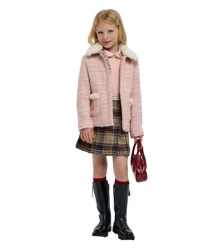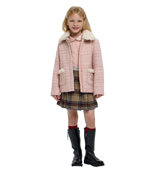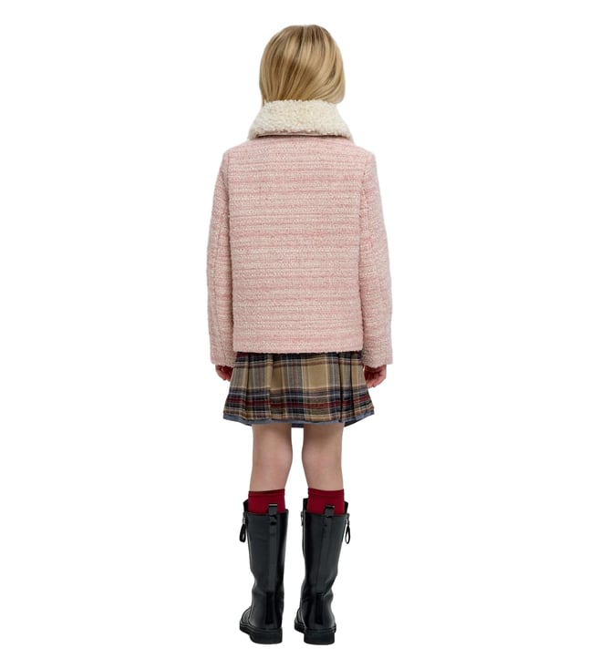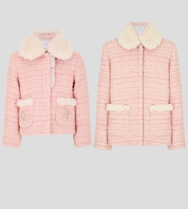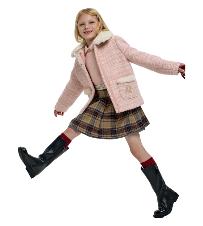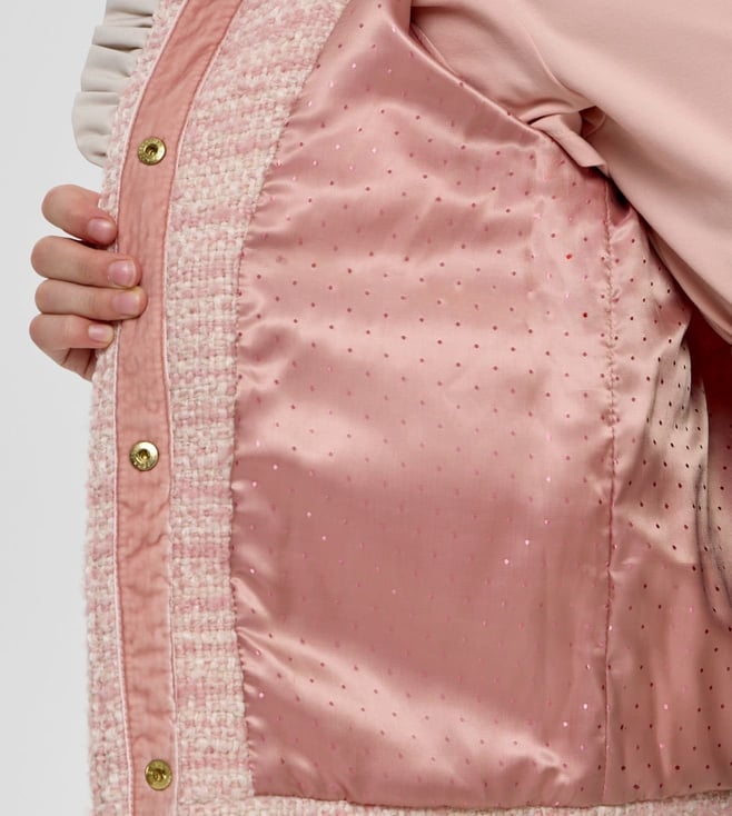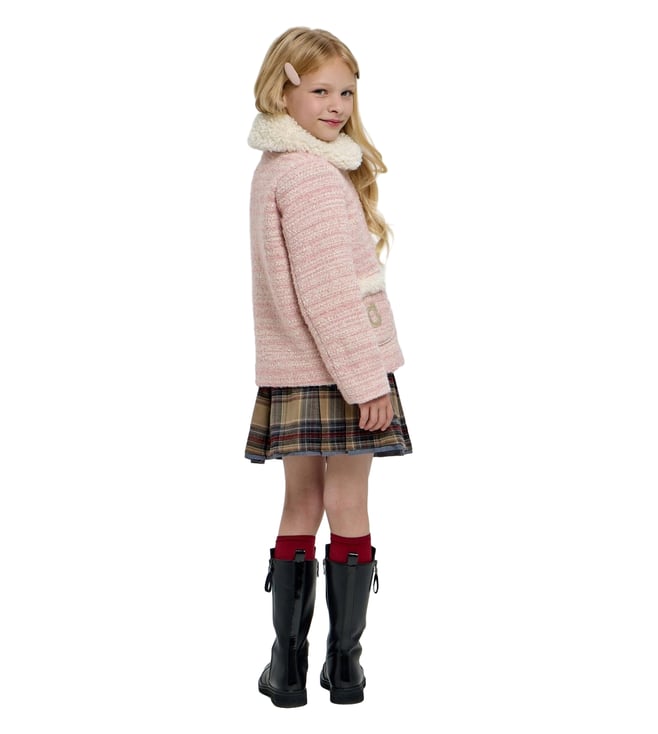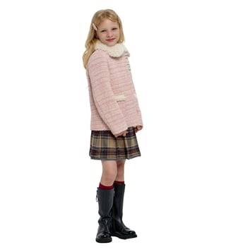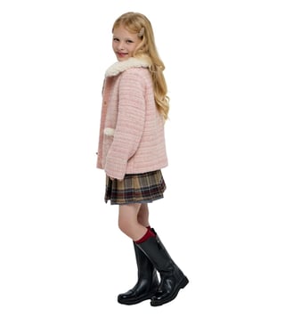This pink textured winter jacket for girls combines warmth with elegant style. Crafted to provide cozy insulation during chilly days, its soft texture adds a refined touch to any cold-weather outfit. Perfect for keeping your child comfortable while maintaining a polished appearance throughout the season.
