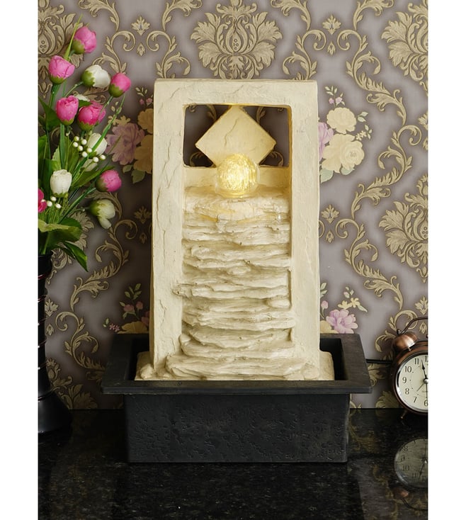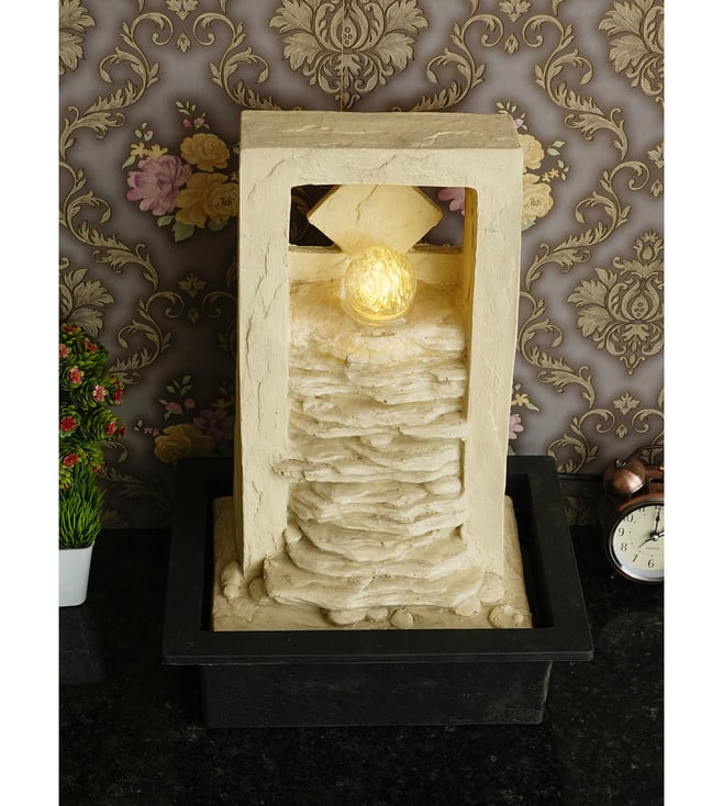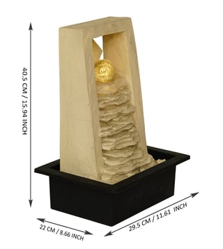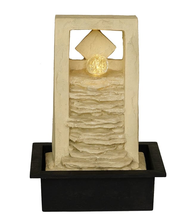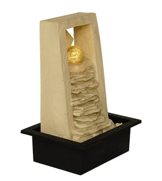 The beautiful rock finish indoor World Cream waterfall fountain is not only a good choice for your living spaces but also makes for a wonderful gift. It has a crystal ball, water tub, and water flow speed controller pump with attached yellow LED light. It is made up of high-quality polyresin.