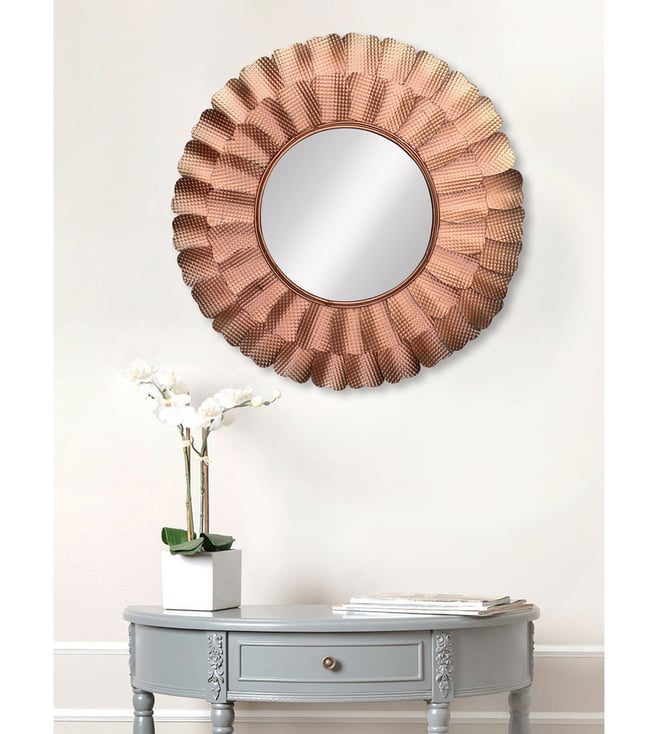 Chronikle World Pink Elegant Round Large Iron Frame Wall Mirror