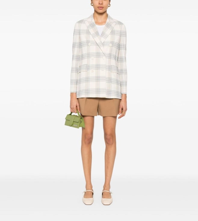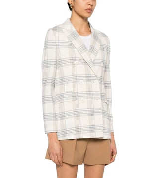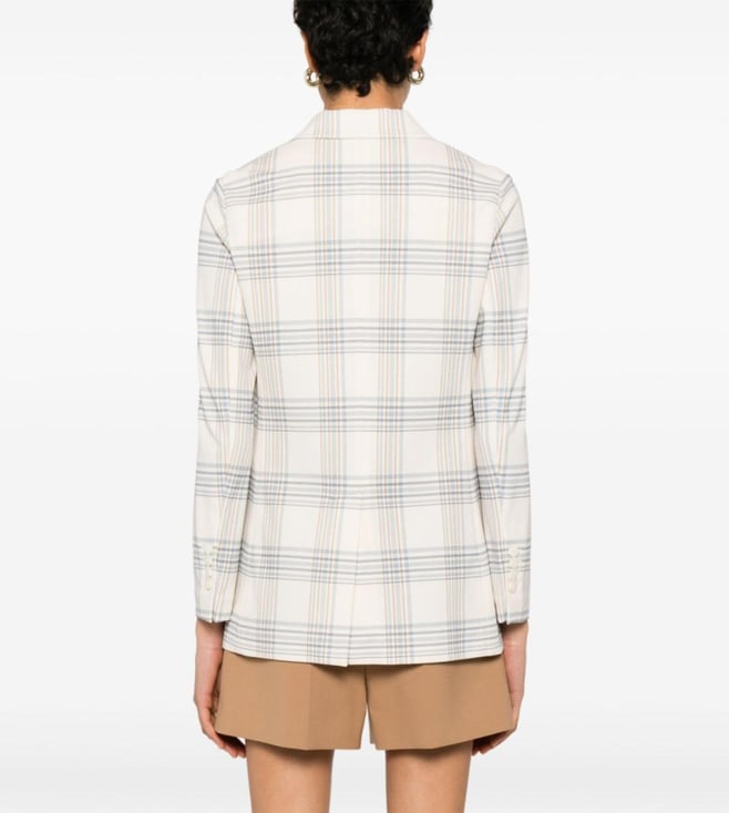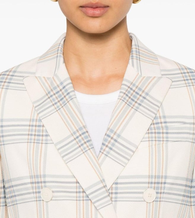 Elevate your wardrobe with this chic beige checked blazer, a perfect blend of sophistication and comfort. Crafted from a premium fabric mix of 97% cotton and 3% spandex, it offers a tailored fit with just the right amount of stretch. The classic lapel collar and long sleeves exude timeless elegance, while the subtle check pattern adds a modern twist. Designed for the contemporary woman, this blazer features a sleek closure, making it an ideal choice for both professional settings and stylish outings.